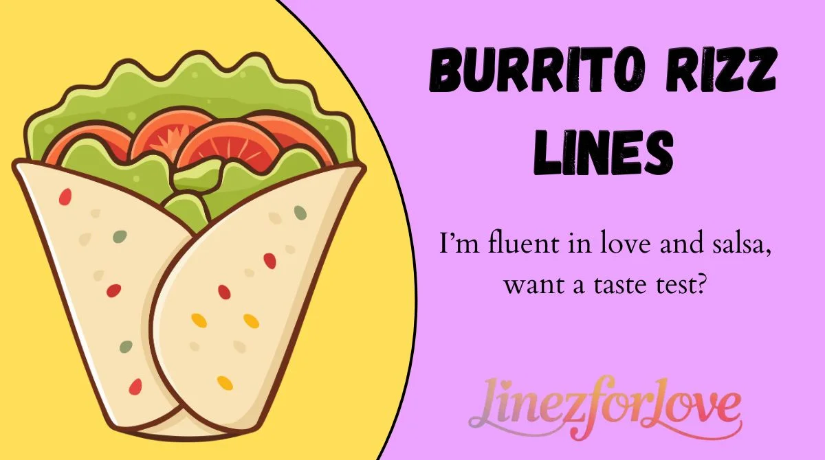 Burrito rizz lines are playful, flirty pick-up lines inspired by burritos. Theyâre perfect for DMs, dating apps, or teasing a crush.